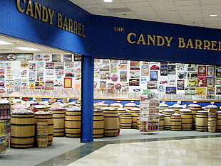 | ここはキャンディを樽に入れて 販売している。 |
