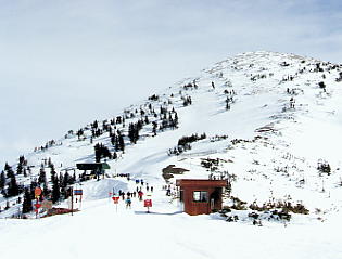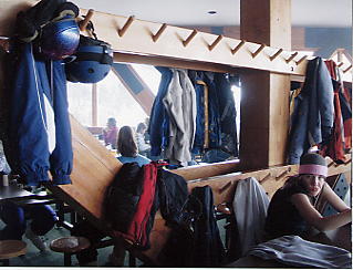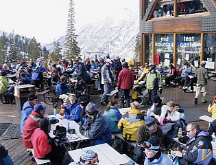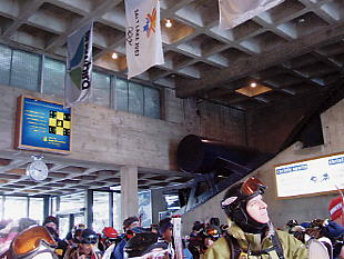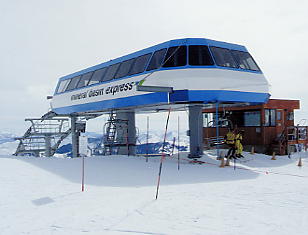 このスノーバードというスキー場はテキサスの石油王、ディック・バスという大富豪が道楽で作ったスキー場として知られる。そんなヤツにスキー場が作れんのかという人もいるだろうが、趣味だからこそ妥協することなくとにかく最高のスキー場を建設しようと全米を探し回り、たどり着いたのがこのソルトレイクの山中だった。標高が高く年間10mを超える雪が降るが、砂漠で相当の水分を抜かれて非常に軽い。アメリカのスキー雑誌「Skiing」が行う「北米で最もすばらしいパウダースキー場」では、隣接するアルタとここスノーバードが何度も1位争いをしているのだが、2002年シーズンに山頂部にリフトを追加してつなげてしまったので、1つの共通券で両山を滑ることができるようになった(でも、やめたがいい。片方だけでも1日では足りないくらいだ)。その後も設備投資を続けており(時には自然保護団体の反対を無視して)ディック・バス氏の野望はまだとどまるところを知らないようだ。 ソルトレイクの概要のページでも言ったが、バンフやウィスラーのような、日本にはない「ロッキー」の山容を堪能するならば、このスノーバードが一番だと思う。 ちなみにこのディック・バス氏は「世界で最初に世界の7大陸の最高峰を登った」ことで有名だ。登山家としてはアマチュアだったが、50歳を過ぎてからお金にモノを言わせ、大勢のガイド・シェルパをやとい、最後にエベレストに登って達成した。これ以来「エベレストはお金で登れる山」になり、毎年モンスーンがおさまる5月ごろに世界じゅうから「商業登山隊」が集まるようになったのも彼が草分けだ。 朝、ホテルのロビーでガイドと待ち合わせる。私ひとりのために半日のガイド付だ。一人催行保証のための追加料金も納得だ。 ホテルのすぐ前にバス停があり、日曜日に限り、スキーバスが来る。このへんのバスは15分くらい遅れてくるのは許容範囲内だが、必ず来るというが、本当に15分遅れでやってきた。脇にスキーやボードの板を置く器具があるのですぐ分かる。ここからすぐフリーウェイに入って市街地を抜け、スキー場へ向かう。途中、3ヶ所くらいの駐車場に寄る。これは渋滞を避け、環境を守るためにスキー場から離れた場所に駐車場を設けて、できるだけそこからバスに乗ることを推奨しているかららしい。ホテル前で8人くらいだったバスが満席近くになり、スノーバードのスキー場に到着した。 到着していきなりアメリカのスキーリゾートを実感させてくれたのは、ロッカーだった。スキーブーツに履き替え、それまで履いていた靴はロッカーに預けるのだが、このロッカーがくせものだった。小さいものでも4ドルもしやがるのだ。ただし、1日に何回でも出し入れしていいという。クレジットカードでOKで、受付られるとレシートが出てきて、空いているロッカーのランプが点滅する。中に靴を入れて閉めると鍵がかかり、開けるときはレシートに書いてある暗証番号を打ち込むというシステムだ。こんなのは見たことないし、クレジットカードでロッカーを使うなど初めてだが、とにかく使うことにした。 さて、ここには125人乗りのロープウェイ「トラム」があり、標高2468mのベースから約8分で標高3352mのヒドゥン・ピークに運んでくれる。リフトが架けられているスキー場で日本で最も標高が高いのが志賀高原横手山の2305mだから、ベースからいって日本のどのスキー場よりも高いのだ。こりゃあ期待できそうだ。 |