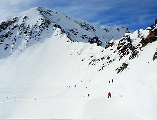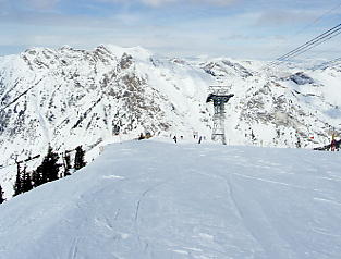 | 上の地図にあるヒドゥン・ピークの裏側、Mineral Basinです。青い点線と緑の点線は動画がありますので、 ご覧ください。(ソルトレイクシティのMOVIE) |