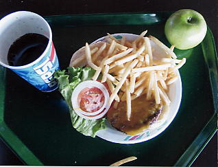| チーズバーガーとリンゴとコーラで 税込み$12.59だ |