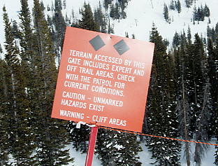 | 非圧雪コースに入るには、右の看板を見ないと入れない |