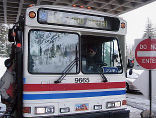 再びピークに登ると、今度は裏山のMineral Basin へ行く。Basinとは盆という意味で、ボウルよりは浅い容器のことだが、日本人から見ると完全なボウル状になっている。南向き斜面なので開発されていなかったが、隣のアルタと連絡するためにクワッド2基が設置され、スキー場としても開発されることとなった。非常に広々としている。北斜面は眼前に大きな山が迫るが、こちらは遠くまで見渡せて開放感は満点だ。 下まで降りた後、アルタとの連絡部分までクワッドで行く。このクワッド、降りる場所で直角に曲がってから降りるという、面白い設計になっている。写真を撮ろうかと思ったがガイドがいて遠慮したので撮り忘れた。まあ、アルタに行ったときにまた撮ればいいか。 ピークでガイドと別れて、ゆっくりと写真を撮りながら滑る。とりあえずリフトは全部乗っておくか。昼になったのでMID-GAD LODGE でランチだ。ここは重厚な作りのレストランで、とりあえずバーガー類で済ませた。 ひとりで滑るのは撮影するにも気が楽だし(シャッターチャンスを待ったり、ちょっと滑って景色のアングルがもっとよくなったら撮り直したり)、滑りながらビデオを撮るのにもマイペースでいいが、リフトの上では寂しいし、時差ボケのせいで眠くなる。これではいかんので、隣の人と話をすることにした。するとまあ、来ている客のほとんどが米国の金持ちで、息子と2人で来てオールスイートのホテルに泊まっているが、カミさんと娘はフロリダでクルーズ中だとか、アトランタから来ているけど、ここが好きで別荘があるとか、金持ちばかりだ。はるばる日本から来ている私は何なんだろう?。 ランチ後3時間くらい滑り、4時にはあがることにした。ところが、市内へ行くバスが待てど暮らせど来ない。とうとう30分も経ったので、頭にきて普通のスキーバスに乗る。これは途中の駐車場で人を降ろしながらTRAXの駅まで行くものだ。1時間くらいかけてバスは駅に到着した。TRAXの駅周囲には何も無くて殺伐とした感じだ。ここで切符を買おうと券売機を見ていたら、黒人が買い方を教えてくれた。そこまでは親切でいいのだが、「帰るのに金が無いから、2ドルくれ」と言ってくる。冗談じゃない、とにかく断ってその場を離れたが、どうも気味が悪い。 ソルトレイクシティは全米一治安がいいというが、駅にはどういうわけかそこのヌシみたいなのが一人いて、「つり銭をくれ」とか、券売機のつり銭の取り忘れをあさったりとか、どうも行儀の悪いことをしている。ガソリンスタンド前では(白人だったが)空のポリタンクを片手に「家に帰るのにガソリンが無いんだ、2ドル貸してくれないか」と言ってきたりするが、これもわざとらしい。単独行動の旅行者にはありがたいものではない。 TRAXで20分くらい乗って8つ目の駅、COURTHOUSEで下車し、ホテルまで歩く。10分くらいの歩きだが、カービングの板が重くて、肩が痛くなった。やはり日本人の旅行者にはちょっとつらいが、スキー場そのものはすばらしい所だった。 夜はスーパーマーケットで買い物をして、DRAGON GRILLという中華料理の店で食事をしてからホテルに戻った。明日は楽しみにしていたディアバレーだ。 |