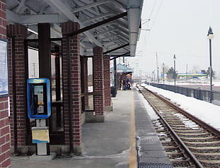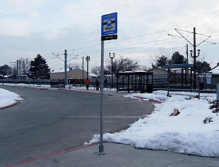 | ここがバス停で、むこうにTRAXの駅が見える |