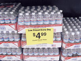 | クリスタルガイザーは500mlが35本で$4.99だ!! (1本15円くらい) |