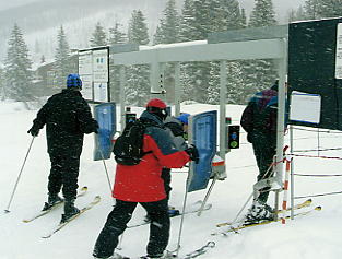 リフト券を青い部分に当てる |