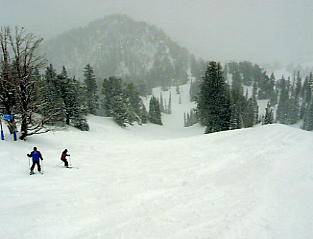 スキーセンターなどどれを見ても今までのスキー場とはだいぶ様子が違う。とにかくちんまりとしている。とりあえず最下部のステーションからクワッドで登り、そこから尾根を横断するようにしてビレッジへと向かった。 リフトは地図を見ても分かるとおり、決して機能的ではない。HoneycombCanyonは繰り返し滑るのは至難の業だ。また、ビレッジから出ている中央2本のリフトは左側が右側を包括しているので、あまり意味がない。最下部からのクワッドをさらに上部に伸ばしてビレッジに一発で回れるようにするか、いっそのことゴンドラでも架ければHoneycombCanyonを繰り返し滑るにいいだろう。まあこんなことを言っていたら日本の古いスキー場のリフトなんか何言われるか分かったもんじゃないが。 ビレッジでもそれほど客が多いわけではない。まあ、いいか。リフトに乗り、かるく足慣らしだ。雪は強くなったり弱くなったりで落ち着かないが、雨でさえなければいいか。降りたての雪はフカフカで、さすがという感じだ。ちょっと滑ったら、ソリチュードのシンボルを掲げた丸太の標識があり(写真見て)、いい感じだ。そういえば石打丸山にもチロルのモニュメントがあったが、私はソリチュードの方が好きだ。 なにはともあれ最上部へ。しかしガスと風が強く、景色のケの字も見えないので早々に退散した。コースは雪が積もり始めていて、10cm以上はあっただろうか。浮遊感にはまだだが、「軽さ」を感じるには十分だ。くるぶしくらいまでの、空気のように軽い雪の上を滑った。 中腹にあるレストランに入る。中はけっこう人がいて、にぎやかだ。食事も今までより値段が安いのがいい。私は丸いパンをくりぬいてスープを入れたものを食べたが、なかなか腹いっぱいになるものだ。 レストランで例によって近くの客と話したのだが、私が会ったのはオヤジと息子というパターンだ。母親は別の所に遊びに行っているという。こういうパターンがなぜか多い。必ずしも一家全員とは限らないのがアメリカの国民性かもしれない。日本だったら離婚間近かと近所の評判になりかねないが、アメリカ人は自分がイヤなら家族であろうと「行きたくない」とはっきり言うのかもしれない。レストランで会った親子はキヤノンのデジカメ(Power Shot)をとても気に入っていて、私がキヤノンの社名の由来を話したら非常に感心していた。ちなみに私がソルトレイクに持ってきたのはソニーのデジカメだ。 とりあえず一通り見ておこうか。少なくともリフトは全部乗っておこう。食後は軽く流すつもりだったが、どんどん積もっていく雪がうらめしくなり、シュプールの無い所を見つけて、繰り返し滑ってしまった。あと1日あれば、降りたてのパウダーを楽しめるのに。 それでも林間などには浮遊感を感じるほどの深い雪もあった。10日以上前の雪が柔らかいまま残っていたからだろう。 そしていつもの約束だ。パウダーエリアは入り口が狭められていて、そこには通過するスキーヤーの鼻先に突きつけるような看板だ。要約すれば「いいか、これだけ言ったんだからケガしてもおまえのせいだからな」ということになる。 なんか脅かされているみたいで、これが客商売かよと思うかもしれないが、この看板はスキー場にとっても生命線となるのだ。遭難事故など起きようなら、スキー場がつぶれるような賠償金が出かねない国なのだ。人がいなかったので、私はやめておいた。 さて、帰ろうか。アメリカ、そしてアメリカ人を感じた5日間だったなあ。スキーベースに戻ると、そこにはどこか懐かしい光景があった。ロッカールームのイスにはどこかの複数の家族がそれぞれ固まって、ランチをとっていた。サンドイッチはおそらく母親の手作りだろう。みんな楽しそうだ。あの安いレストランの費用をさらに節約してのことだろうか。今までの金満リゾートスキー場とはちょっと趣が異なるが、これがきっと地元に根付いた、ソリチュードの魅力なのかもしれない。 極上のパウダーでありながら、全体が小ぶりで人が少ない。リフト券もレストラン料金も安い。地元民に人気があるのも当然だろう。もしあなたがソルトレイクに行くならば、日本離れしたスキー場としてスノーバード、ディアバレー、パークシティを推薦しよう。しかし日数に余裕があるなら、このちんまりしたソリチュードにも行ってみてほしい。きっと好きになるだろう。 今日は早めにあがり、明日の帰国にそなえて土産を買ったり、いろいろ市内を回った。このレポは最終日の市内ガイドということでまとめて報告しよう! |