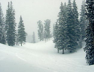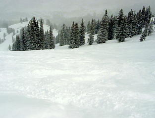 | フカフカコースだ。 右上のボカシは、レンズに付着した雪だ |