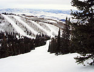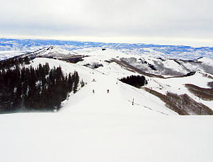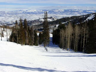 | スキー場最高地点のEmpire Canyonからの眺めはすばらしいものがあります。そして直線的にコブ斜面がいくつもあるのですが、山の尾根をぐるりと回る中級圧雪コースもしっかりあります。 (9.37MB 2分43秒) |