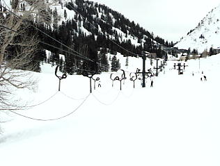 | アルタとスノーバードは山頂付近で連絡しています。初日スノーバードに行ったときにこの珍しい横向きで降りるクワッドを撮影していなかったので、アルタに行ったときに撮影しました。 (1.0MB 22秒) |