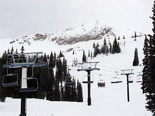 | KEYSTONEはサミットハウスからやや大回りしながら写真のTHAYNESという古めかしいリフトの乗り場まで降りるコースです。 途中、昔使用されていた鉱物を発掘する設備が点在しているコースです。 (6.35MB 2分18秒) |