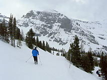 (5)サンシャインビレッジ、ゴーツアイのコース、ルックアウト山を見ながら。