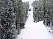 (8)レイクルイーズ、針葉樹林の中のリフトでヒヤリ